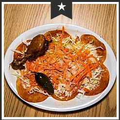 Also known as Picadita originating from Southern Mexico, thick tortilla topped with shredded lettuce, cheese, salsa, and your choice of carnitas, grilled steak, pastor, michoacanas, chicken, or cabeza.