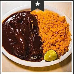 Rolled homemade tortilla filled with your choice of meat (chicken or shirmp), smothered with our homemade red sauce, and topped with cheese and cream. Served with rice and beans.